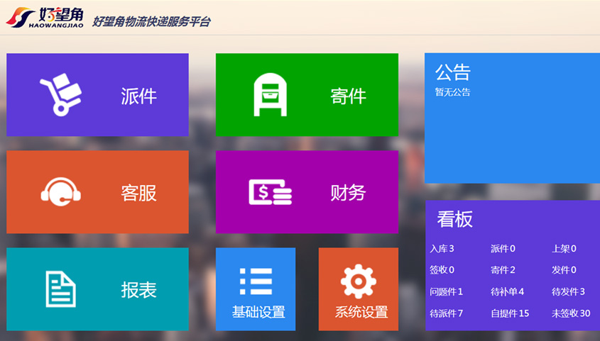 好望角物流快遞服務(wù)平臺以“最后一公里”為突破口,實(shí)現了快遞從配送中心到客戶(hù)手中的全流程服務(wù)。系統通過(guò)對接上游的快遞公司運單進(jìn)行派件和計件操作,主要用來(lái)幫助該公司正確的統計派件、寄件數量,客戶(hù)服務(wù), 財務(wù)結算,店面管理等。用戶(hù)可通過(guò)使用該物流平臺,實(shí)現物流行業(yè)的派件(包括掃碼入庫,自提,收貨確認), 派件登記(電子稱(chēng)重,物流查詢(xún)跟蹤)。