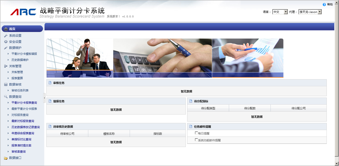 • 總系統管理員:有最大權限負責制定戰略要素、平衡計分卡模板、對標模板、發(fā)放模板、公司信息維護,包括新建用戶(hù)、角色、分配填寫(xiě)和審核人員,最大權限可以代理任何系統用戶(hù)。