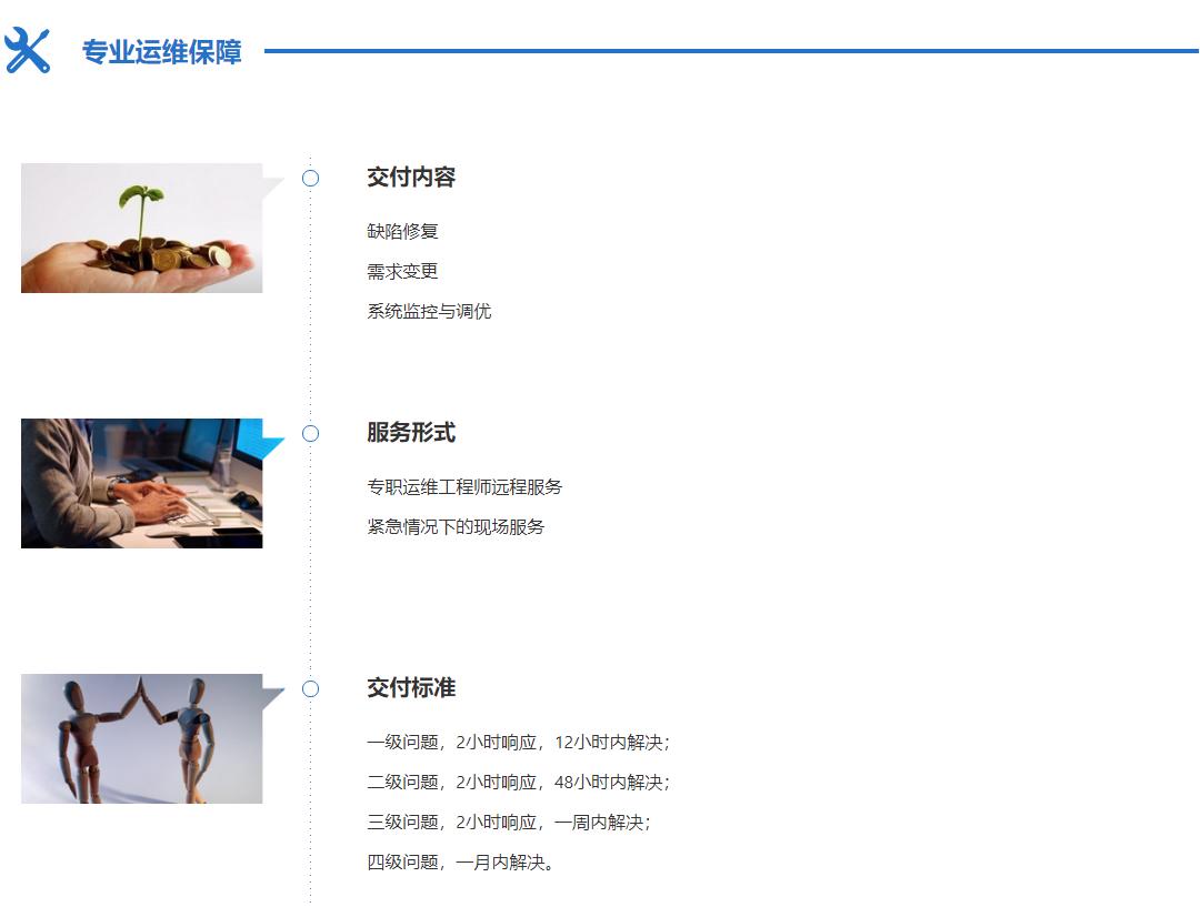 互聯(lián)網(wǎng)應用研發(fā)、運維一體化服務(wù),面向具有明確的信息系統建設需求的企業(yè),提供快速交付軟件產(chǎn)品服務(wù),并可根據企業(yè)需求進(jìn)行后期迭代式開(kāi)發(fā)服務(wù)。